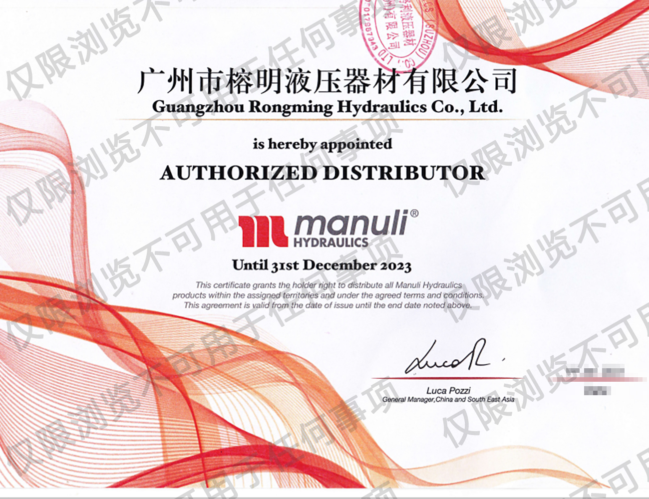 瑪努利公司授權代理經銷商代理證書