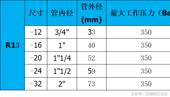 附:常用液壓膠管內(nèi)外徑及最高工作壓力參數(shù)