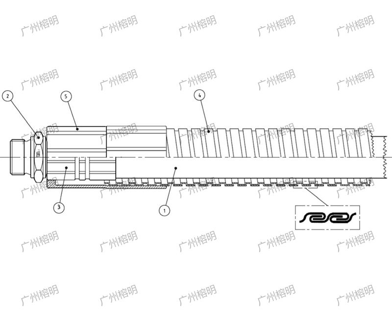 1.液壓欽管;2.MF2000液壓接頭芯,尾部安裝O型圈僅限于內鎖增強式(IP)接頭方案;3.MF2000液壓套簡;4.外部柔性金屬鎧甲(內鎖式柔性金屬軟管);