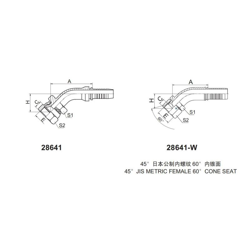 45° JIS METRIC FEMALE 60° CONE SEAT