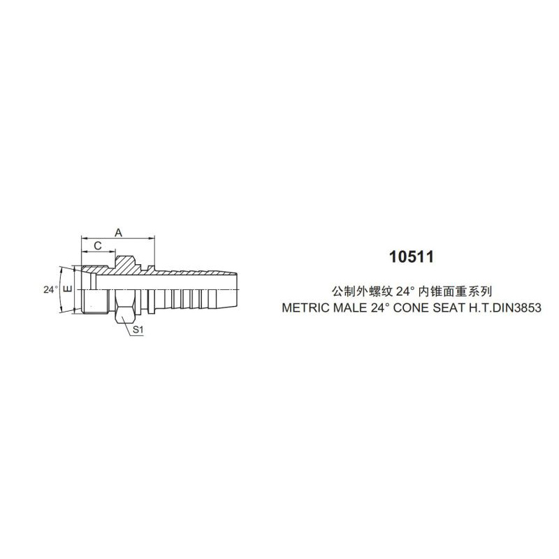 扣壓式接頭 10511 公制外螺紋 內錐面重系列